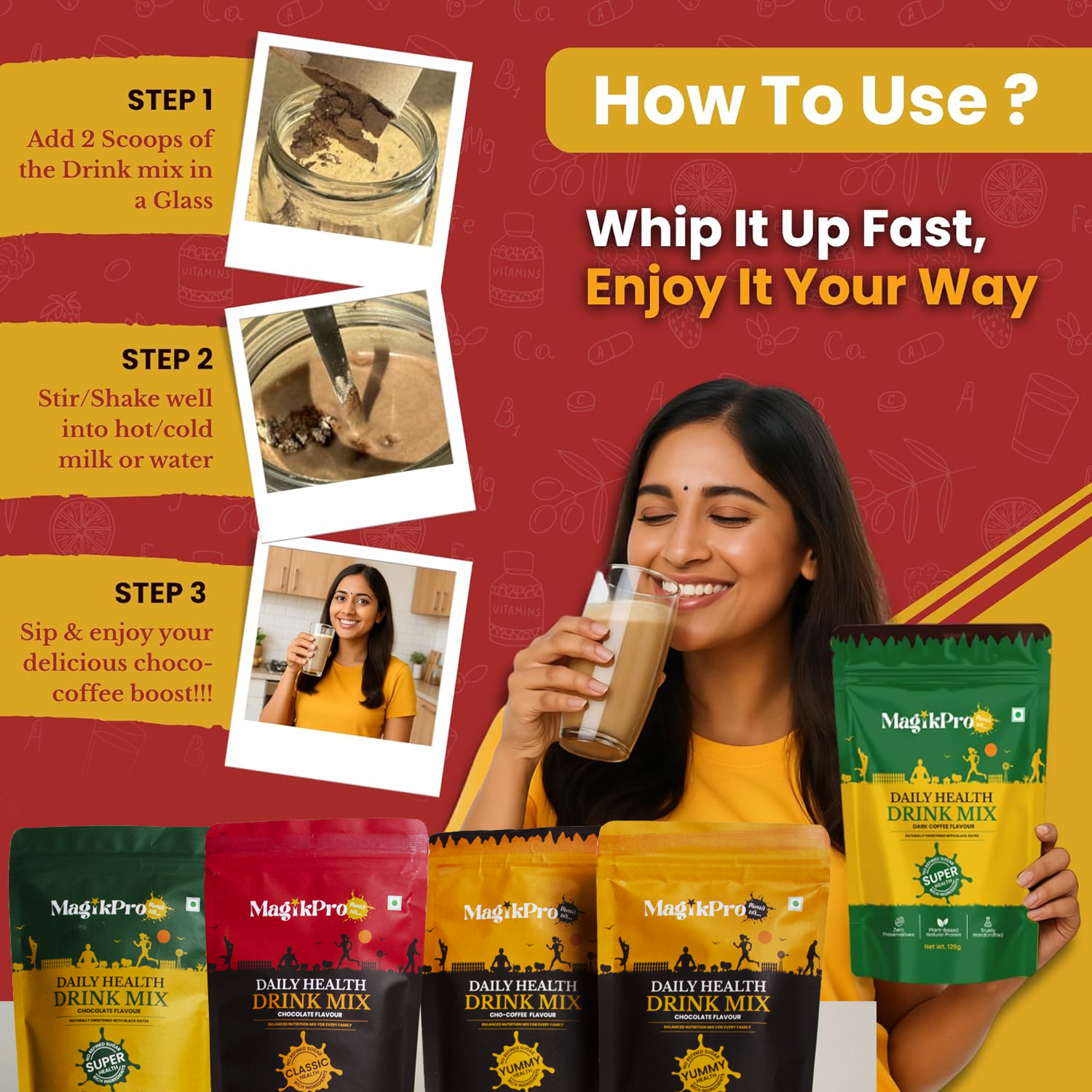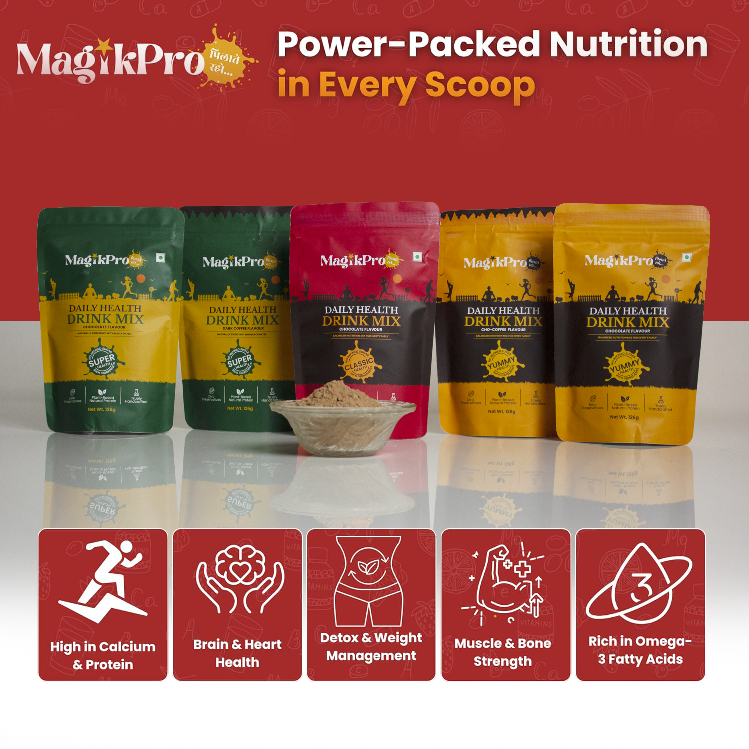 At MagikPro, we believe in nourishment that respects tradition and embraces modern health. This trial pack is your perfect introduction to guilt-free, functional daily beverages for the entire family.